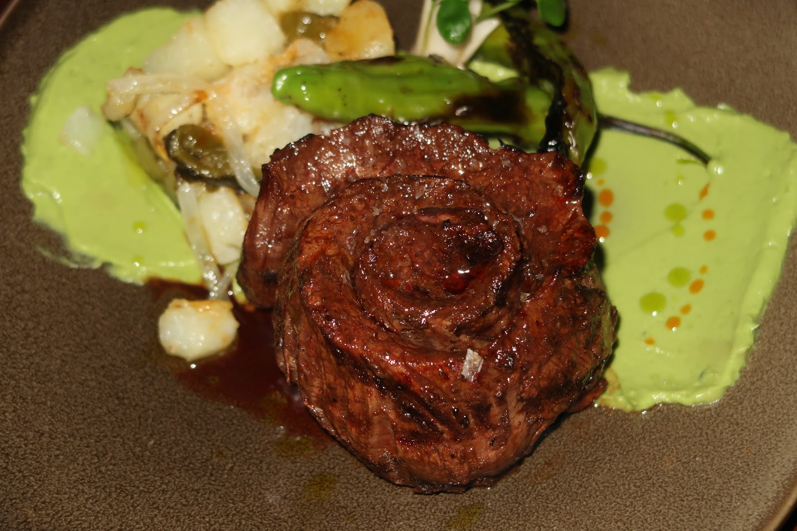 The final dish that we got was the Ancho Chile Arrachera ($34) which was by far, my favorite dish of the night. I absolutely loved the presentation of the dish and how they rolled the skirt steak to resemble a rose. The meat was so tender and seasoned so well. We barely had to use a butter knife to slice the meat - it was that tender. They didn't even give us a steak knife because they know that it was completely unnecessary.